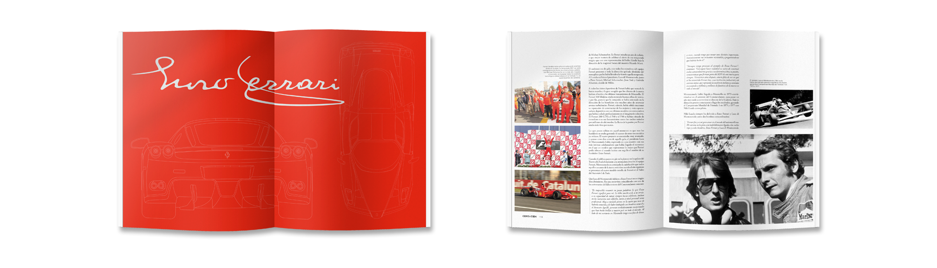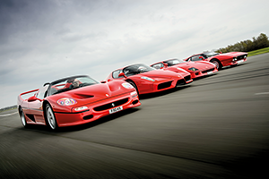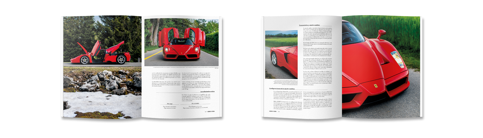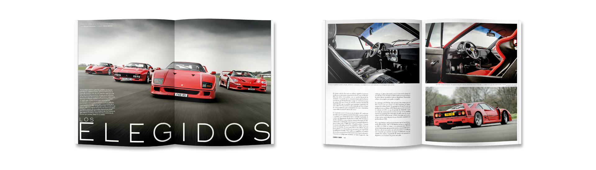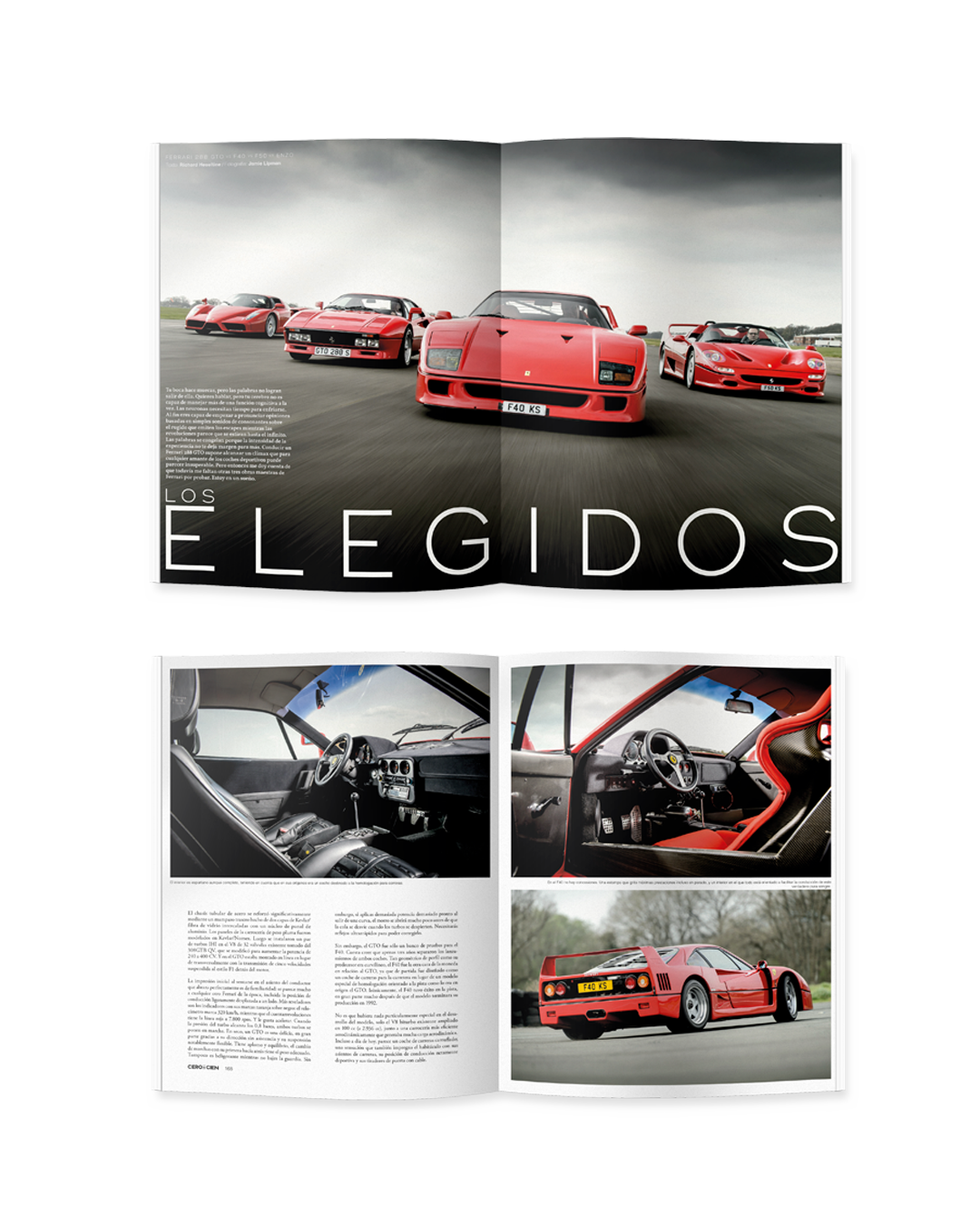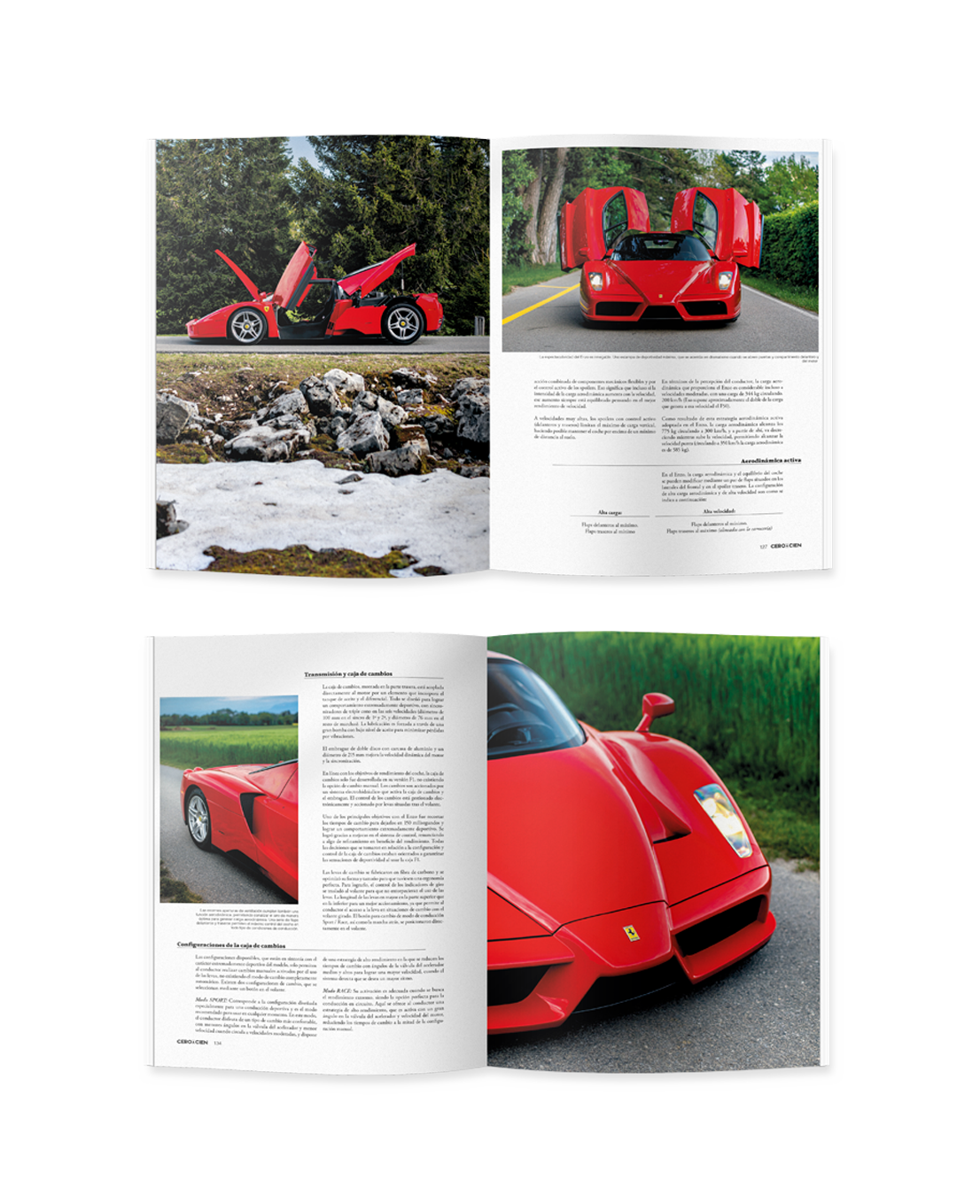 Ferrari Enzo como artículo principal. Acompañado de una comparativa espectacular entre nuestro protagonista, el F50, el F40 y el 288 GTO. Combate entre purasangres.