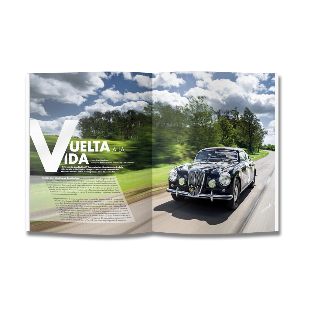 Otro reportaje muy significativo es el que compara el Dino 206GT con el posterior 246 GT, acompañado de un extraordinario reportaje fotográfico. También rendimos homenaje a una fantástica restauración de un Lancia Aurelia B20GT Coupé de 1951 que fue directamente de la línea de montaje a la Mille Miglia, ganando en su clase.